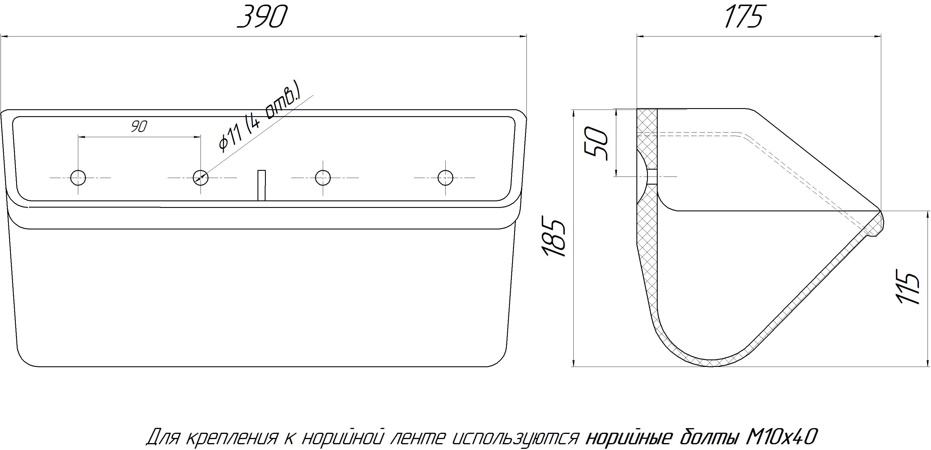 Благодаря увеличенной ёмкости и оптимальной форме, ковш обеспечивает высокую производительность при минимальном просыпе материала. Подходит для работы на лентах норий с повышенными нагрузками. Удобная конструкция с четырьмя отверстиями позволяет надёжно закрепить ковш на ленте, исключая смещение при эксплуатации.